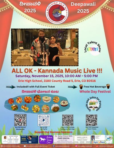 ಕೊಲೊರಾಡೋ ಕನ್ನಡ ಕೂಟದ ಈ ಹೆಮ್ಮೆಯ 'ದೀಪಾವಳಿ ಹಾಗೂ ಕನ್ನಡ ರಾಜ್ಯೋತ್ಸವ 2025' ಕಾರ್ಯಕ್ರಮಕ್ಕೆ ತಮಗೆಲ್ಲರಿಗೂ ಆದರದ ಸ್ವಾಗತ.